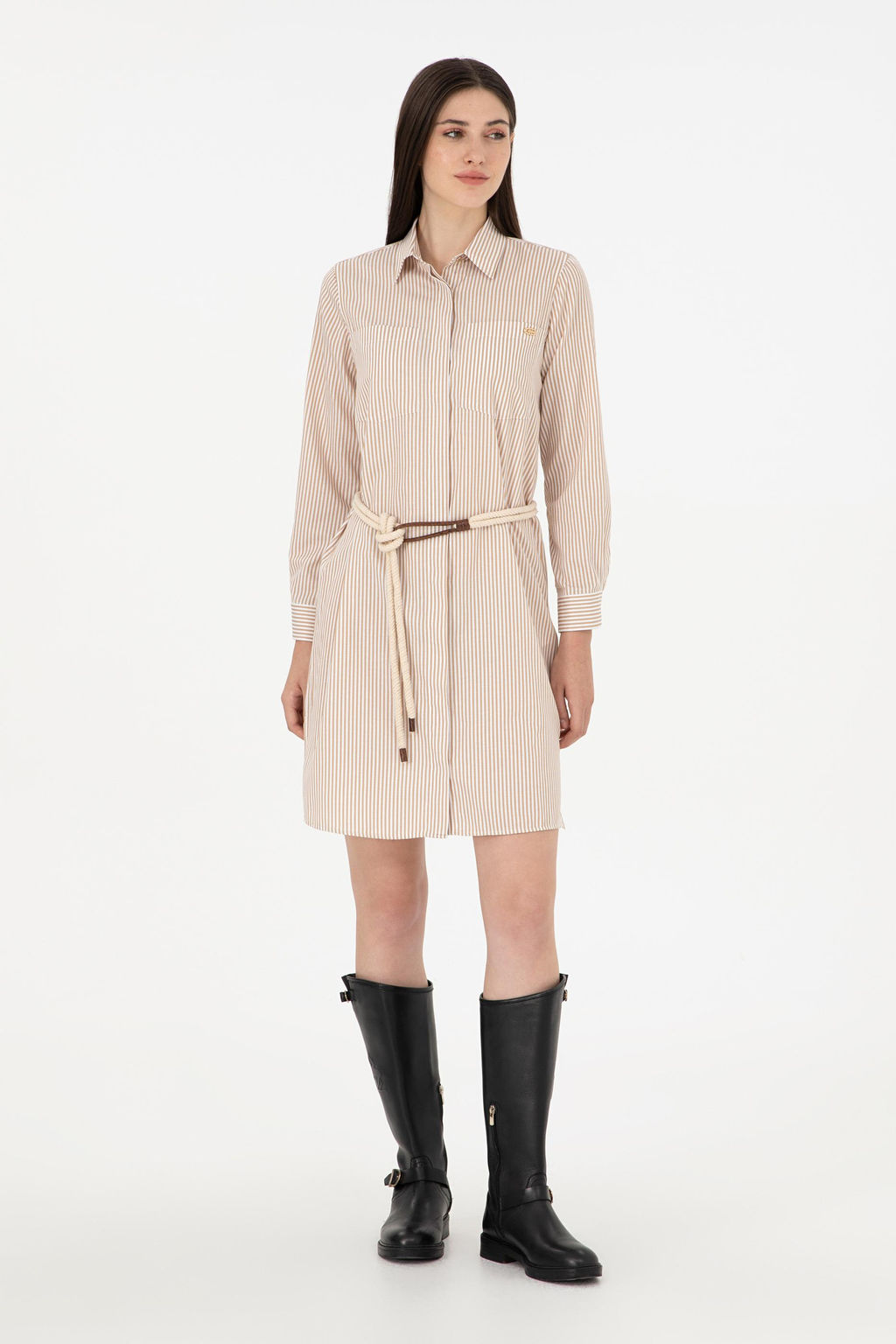 Женское тканое платье в песочную полоску