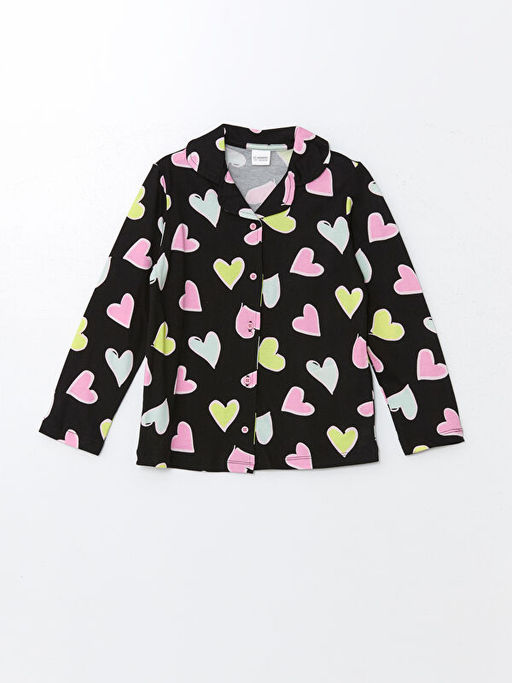 G?mlek Yaka Bask?l? K?z ?ocuk Pijama ?st