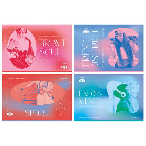 Альбом для рисования BG А4 20л. на скрепке "Free live" (АР4гр20 11819) обложка картон
