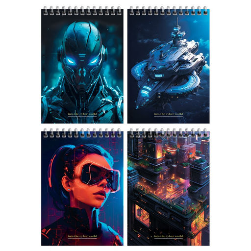 Блокнот А6 80л. на гребне "Cyber world" ("BG", Б6гр80_лм_тф 12779) твердая обложка, матовая ламинация, тиснение фольгой