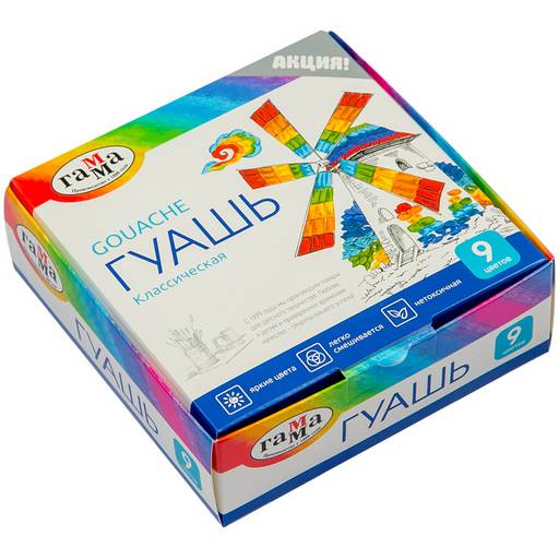 Гуашь ГАММА "Классическая" 9цв. 20мл. (2210309)