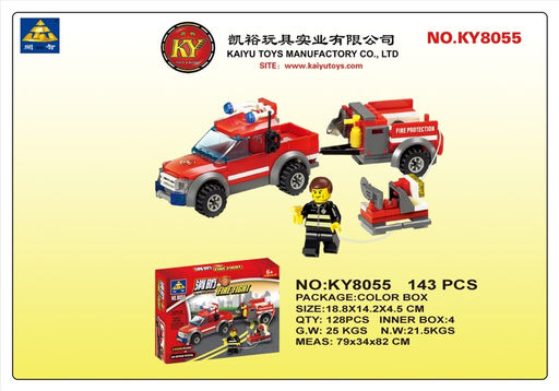 Конструктор "KAZI" 143 дет. "Пожарная машина с прицепом, компрессором и фигуркой" (8055) в коробке (р)