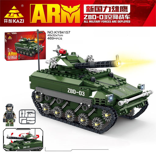 Конструктор "KAZI" 469 дет. "Танк ZBD-03 поворот башни + фигурка" (KY84157) в коробке (р)