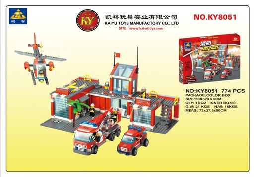 Конструктор "KAZI" 774 дет. "Пожарная станция + 2 машины, вертолет и 5 фигурок" (KY8051) в коробке (р)