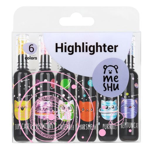 Набор текстмаркеров MESHU "Meowspace" 6шт., 1-5мм., неоновые цвета (MS_76375)