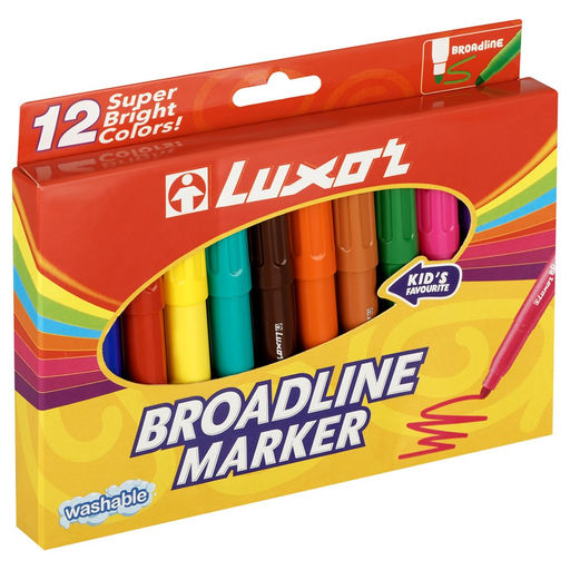 Фломастеры Luxor "Broadline" 12цв., утолщенные, в карт.уп. (6180/Box) смываемые
