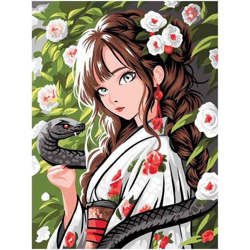 Картина по номерам на картоне "Девушка с черной змеей" 30*40см (КК_53828) ТРИ СОВЫ, с акриловыми красками