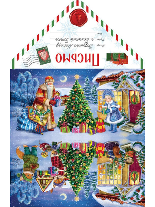 Открытка "Письмо Деду Морозу. Дед Мороз и внучка у елки" (ПД-6040) уф-лак