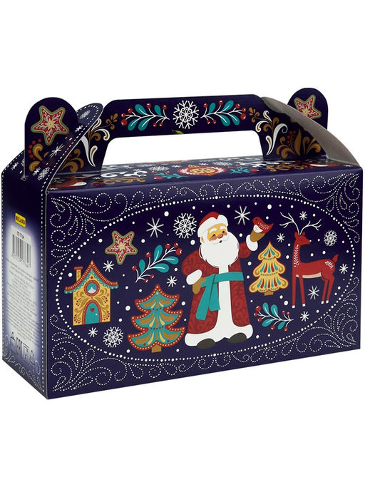 Коробка для новогоднего подарка "Сундучок. Дедушка Мороз и лесные звери" (ПП-7764) до 0.5кг.