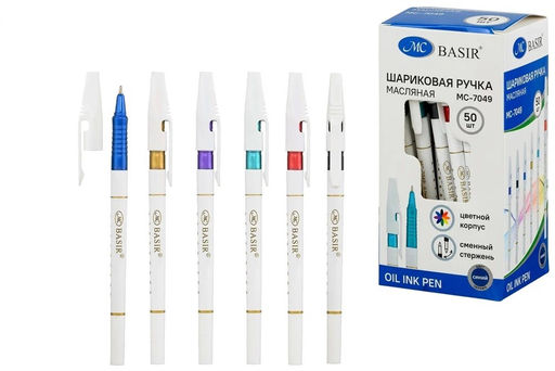 Ручка шар. "Basir" (MC-7049) на масляной основе, синяя, 0.7мм, белый корпус