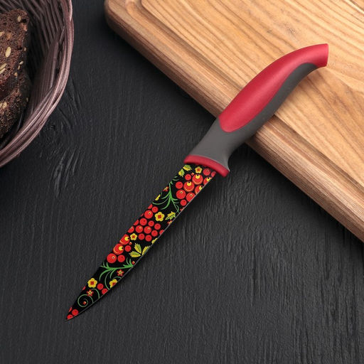 Нож кухонный с антиналипающим покрытием Доляна Русский узор, лезвие 12 см