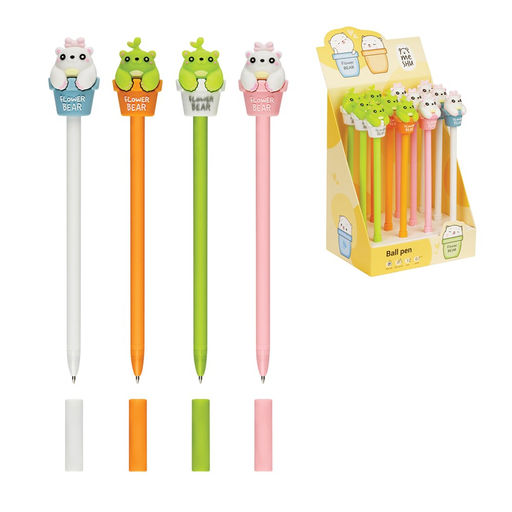 Ручка шар. MESHU "Flower Bear" (MS_02798) синяя, 0.7мм, корпус ассорти, с фигуркой