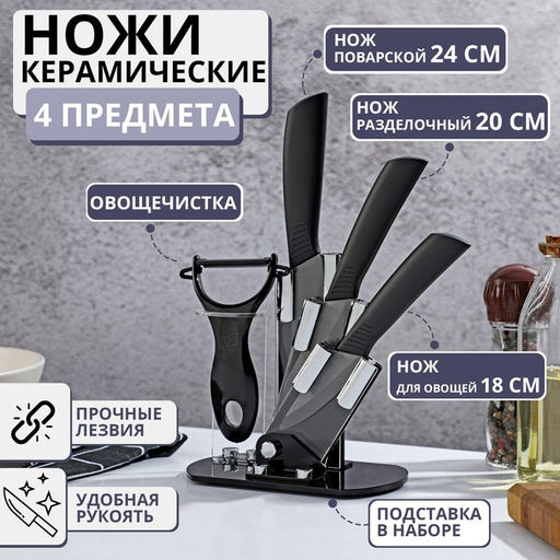 Набор ножей Magistro Black, 4 предмета, на подставке, цвет чёрный