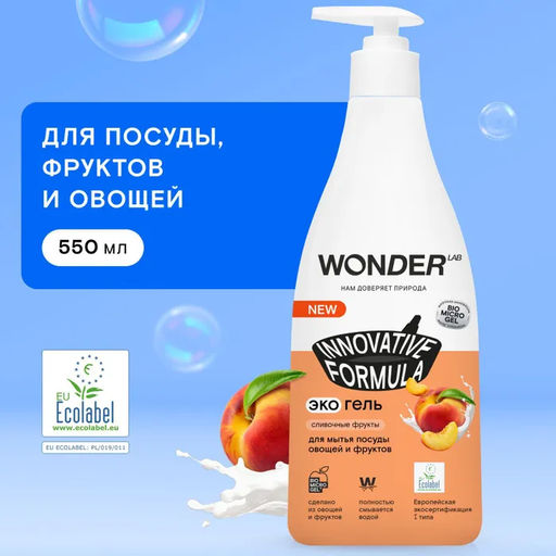 Экогель для мытья посуды, овощей и фруктов (сливочные фрукты) 0,55 л WONDER LAB/вондер лаб
