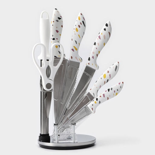 Набор кухонных принадлежностей на подставке Доляна Sparkle, 7 предметов: 5 ножей, мусат и ножницы