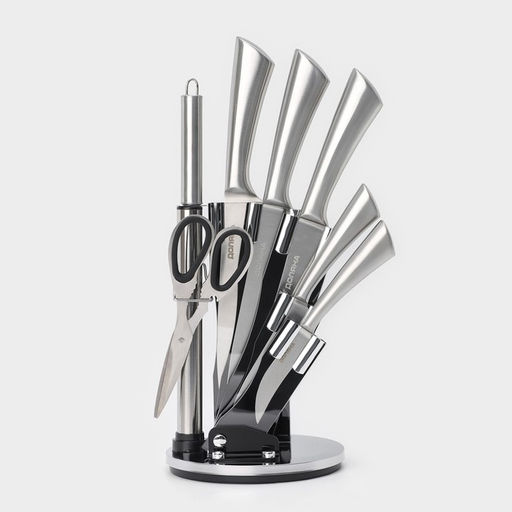 Набор кухонных принадлежностей на подставке Ardone, 7 предметов: 5 ножей, мусат и ножницы, цвет хромированный