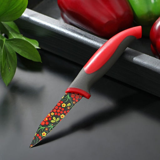 Нож кухонный с антиналипающим покрытием Доляна Русский узор, лезвие 8 см