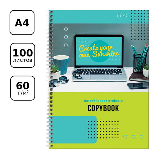 Тетрадь 100л. А4 тв. обложка, на спирали "Рабочее настроение" клетка (ТТ4гр100_лг 11221, "BG") глянцевая ламинация