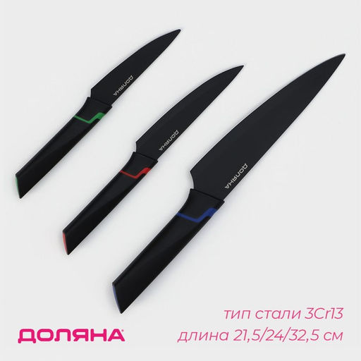 Набор кухонных принадлежностей Доляна Simplex, 3 шт, длина лезвий (10 см, 12,7 см, 19 см), цвет чёрный