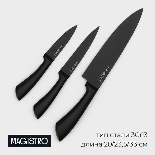 Набор кухонных ножей Magistro Vantablack, 3 шт, 20/23,5/33 см, длина лезвий (8,9/12,7/20,3 см), цвет чёрный
