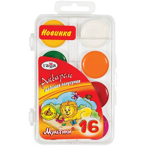 Акварель ГАММА "Мультики" 16цв. пласт. уп., без кисти (211046_16)