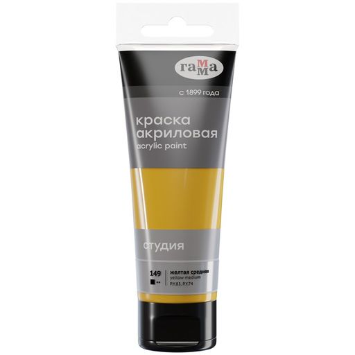 Краска акриловая худож. ГАММА "Студия" желтая средняя, туба 75мл. (280220149)