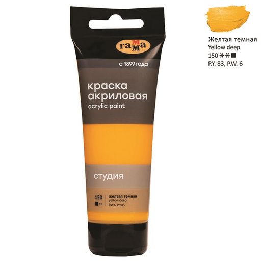Краска акриловая худож. ГАММА "Студия" желтая темная, туба 75мл. (280220150)