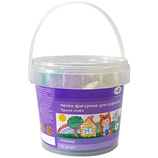 Набор мелков цветных ГАММА "Малыш" 12шт., для рисования на асфальте (150220218) фигурные, в пласт. ведре
