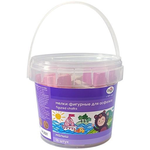 Набор мелков цветных ГАММА "Малыш" 16шт., для рисования на асфальте (150220217) фигурные, в пласт. ведре