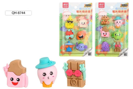 Набор ластиков 6шт. "Веселые фрукты/Food" (QH-8744) в блистере 17*10,5см