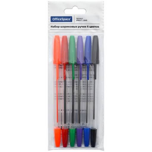 Набор ручек шар. OfficeSpace 6цв. (BP6/511_6648) 1мм