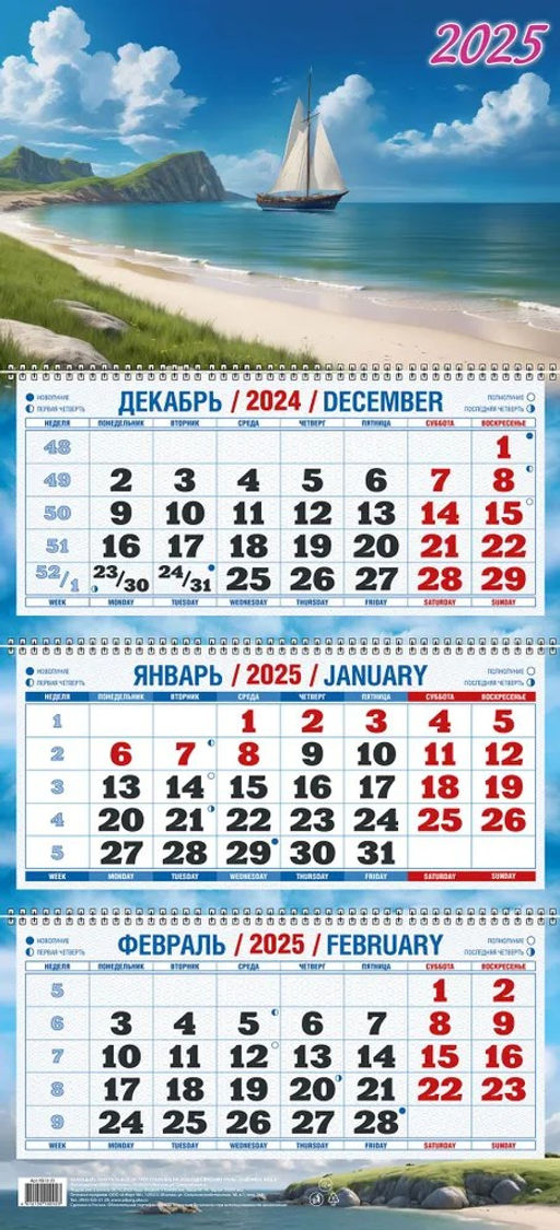 Календарь квартальный настен. трехблочный, 310*680мм, 2025г. "Тихая бухта" (КБ16-25)