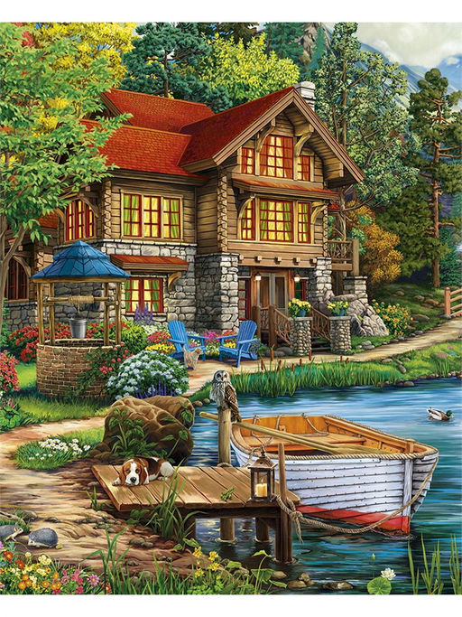 Алмазная мозаика 22*32см "Домик у причала" 22цв. (НД-8555) полное заполнение, с подрамником