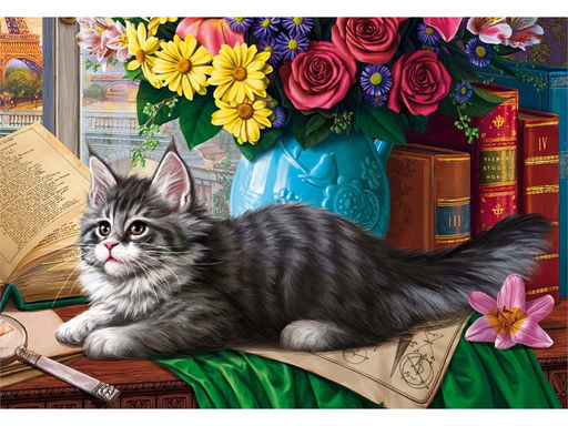 Алмазная мозаика 22*32см "Котенок и натюрморт" 25цв. (НД-8553) полное заполнение, с подрамником