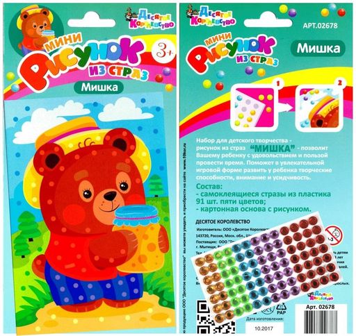 Аппликация - картина из страз мини "Мишка" (02678, "Десятое королевство")