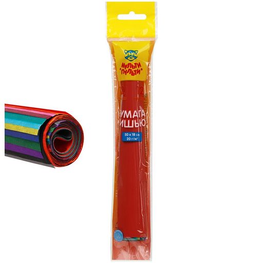 Бумага тишью Мульти-Пульти "Приключения Енота" 180*500мм, 12 л., 12цв., 20г/м2. (Т12_40462) в рулоне
