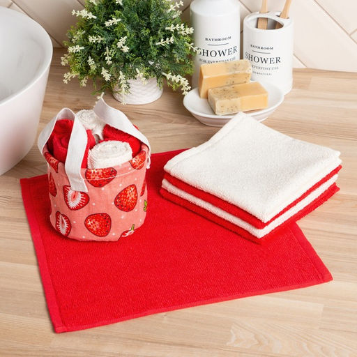 Набор салфеток махровых универсальных в корзинке Этель "Клубника"30х30см-5шт,100% хлопок,340г/м2