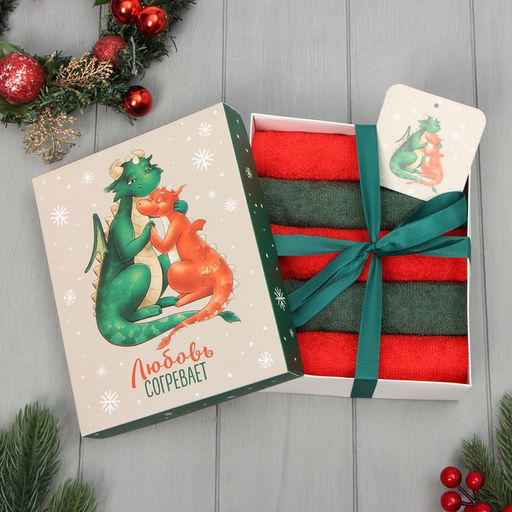 Набор махровых полотенец Этель "Любовь согревает" 30х30 см -5шт, 100% хл, 340гр/м2