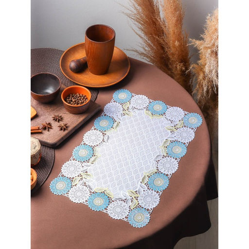 Цена за 12 шт. Салфетка ажурная для стола Подсолнухи, 4530 см, цвет жёлто-голубой