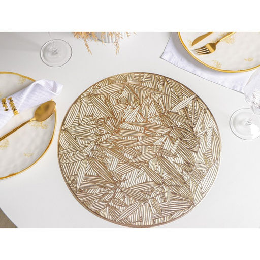 Набор салфеток сервировочных на стол Доляна Листья, d=38 см, 4 шт, цвет золотой