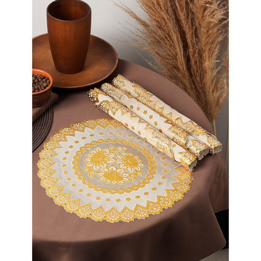 Набор салфеток кухонных Букет, 4 шт, d=30 см, цвет золотой