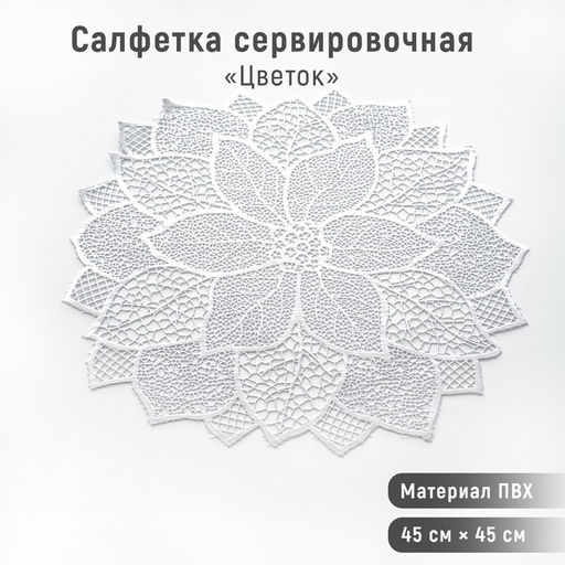 Цена за 12 шт. Салфетка сервировочная на стол Цветок, d=43 см, цвет серебряный