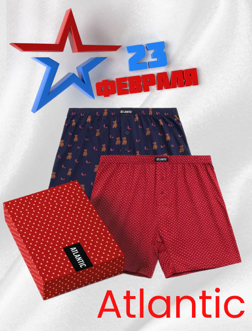 ATLANTIC 2GMB-008 Трусы боксеры Bear - набор 2 шт. темно-синий + красный