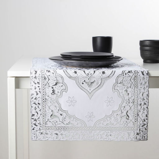 Салфетка ажурная для стола Восток, 8440 см, ПВХ, цвет серебряный