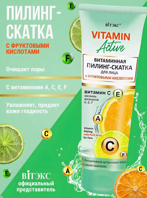 Витекс VITAMIN ACTIVE ПИЛИНГ-СКАТКА Витаминная для лица с фруктовыми кислотами 75мл