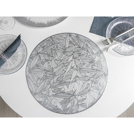Набор салфеток сервировочных на стол Доляна Листья, d=38 см, 4 шт, цвет серебряный