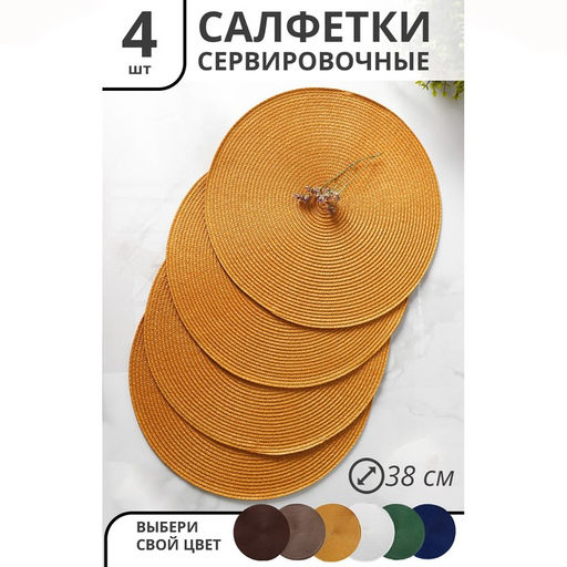Набор салфеток сервировочных на стол Доляна Лофт, 4 шт, d=38 см, цвет песочный