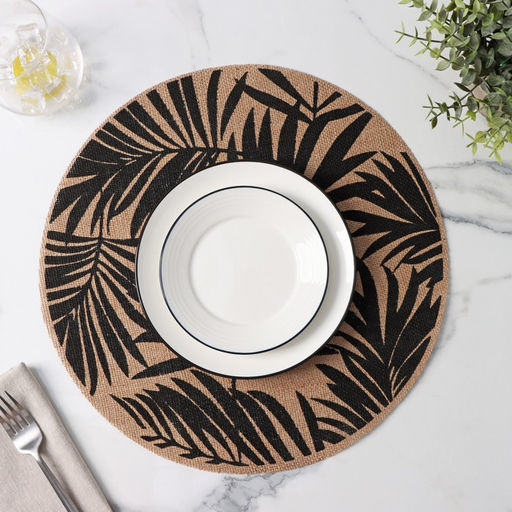 Набор салфеток сервировочных Доляна Листья, 4 шт, d=38 см, цвет чёрный