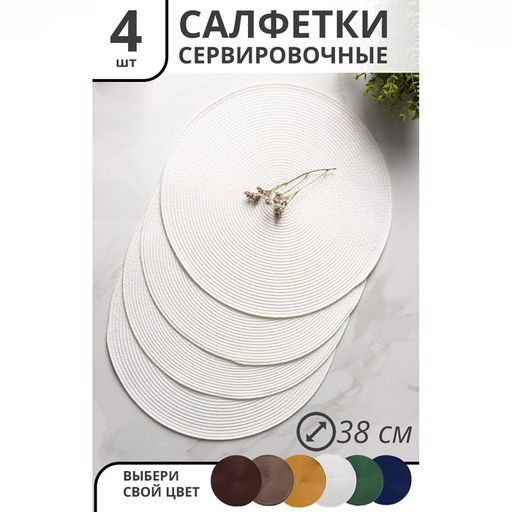 Набор салфеток сервировочных на стол Доляна Лофт, 4 шт, d=38 см, цвет белый