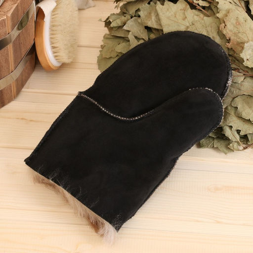 Рукавица банная из овчины, черная